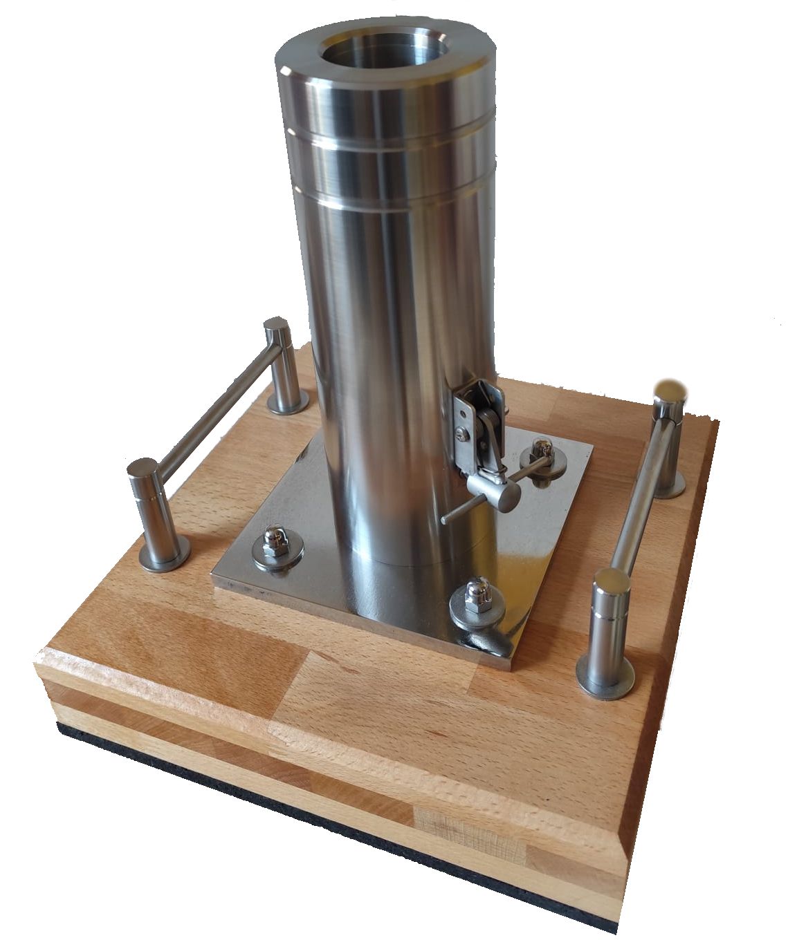80 mm Standböller Edelstahl, 330 gr. Pulver, auf 5 fach verleimter Holzplatte, Pistonschlüssel, Reisleine 10 m, Beschuss auf deinen Namen. Kundenwünsche können